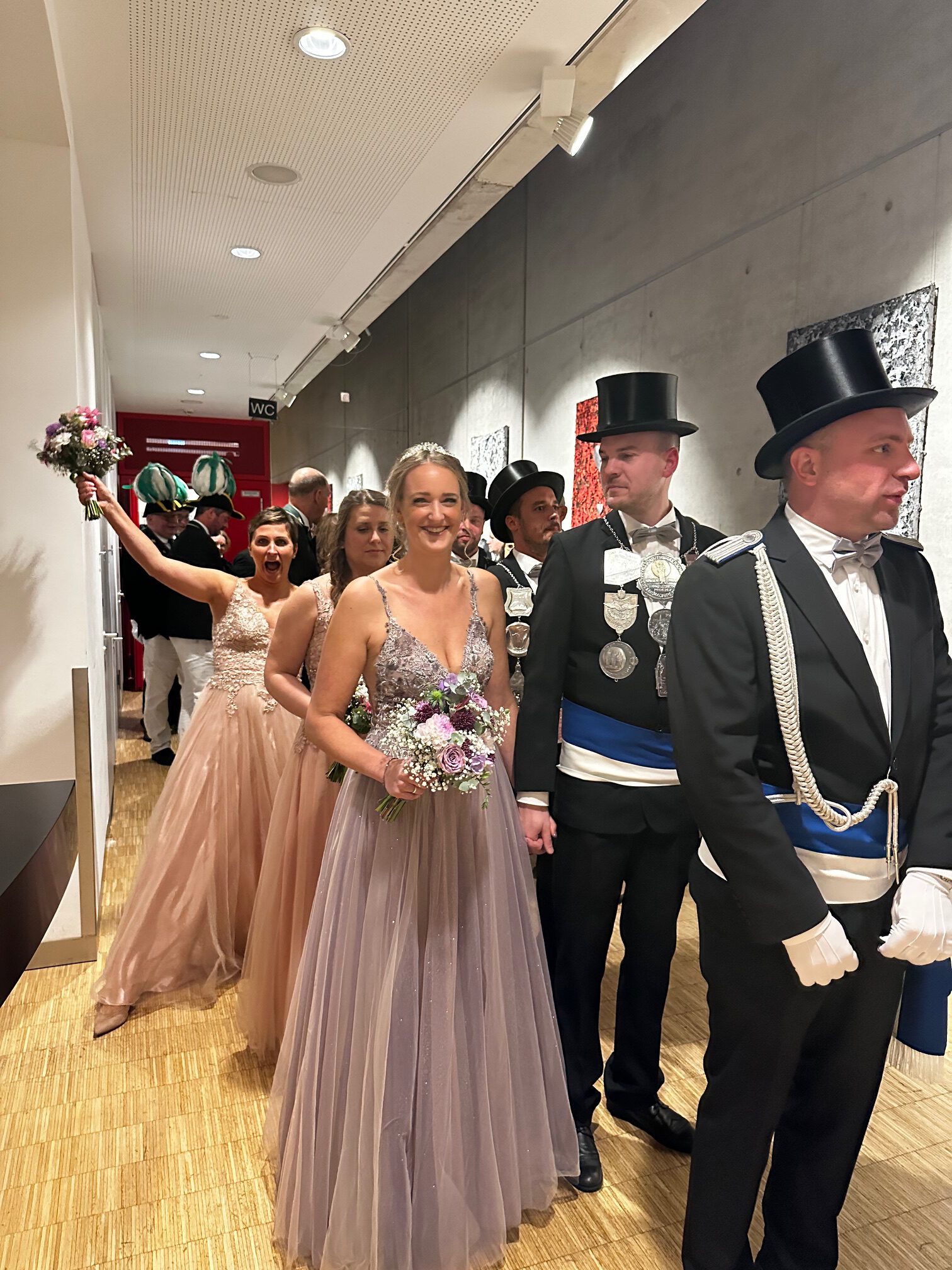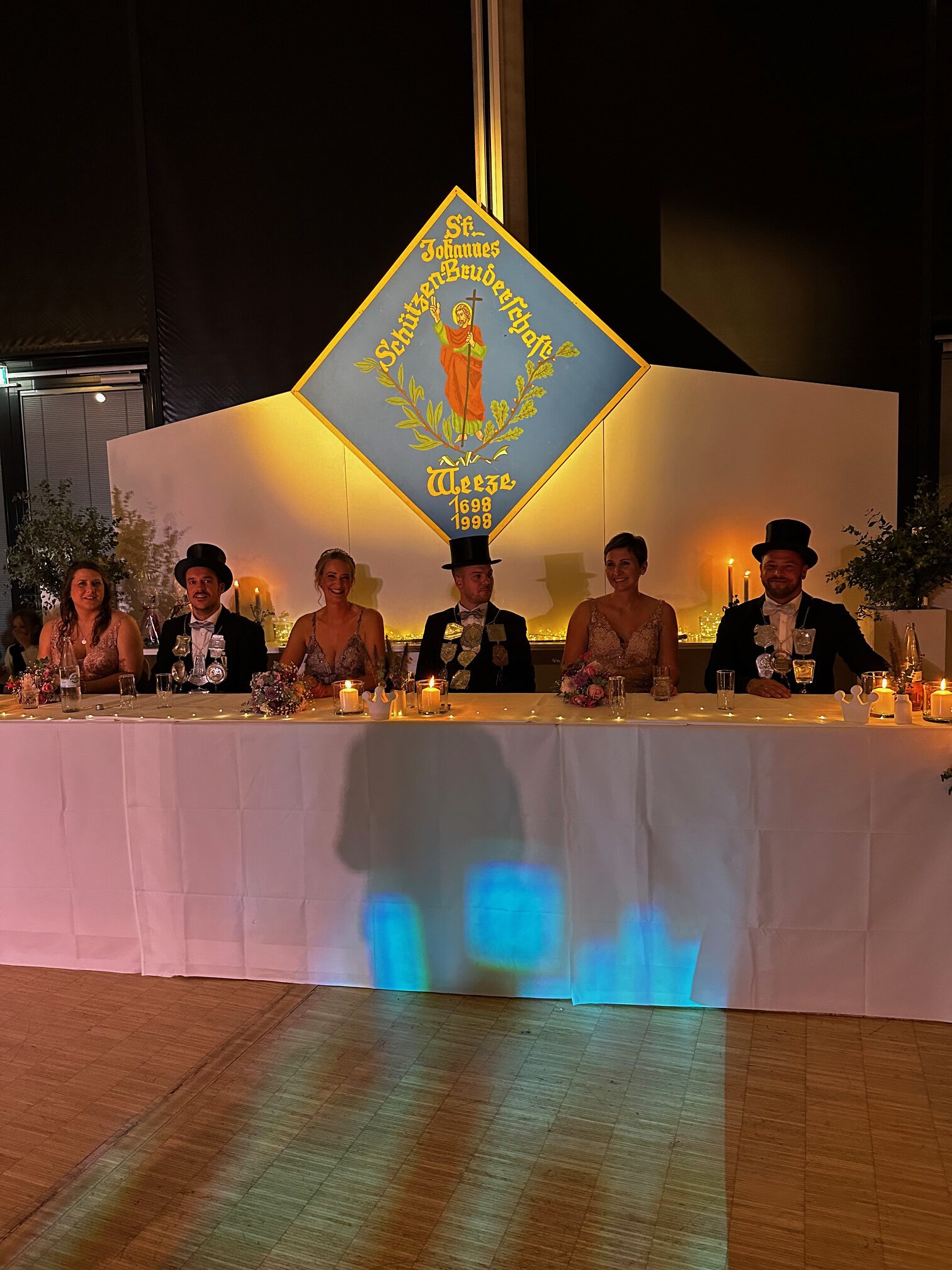 Die befreundeten Bruderschaften St. Sebastianus Wemb, St. Sebastianus Hees-Baal, St. Kosmas&Damian Hülm-Helsum, Hubertus Gilde Keylaer und St. Stephanus Gilde Kessel mit ihren Königinnen und Königen, Begleitungen, Ministern und Abordnungen waren ebenfalls der Einladung des Throns und der Weezer Bruderschaft zum Königsgalaball gefolgt. Ein Novum in diesem Jahr war die Schar der Thronkinder, die an diesem Abend etwas länger aufbleiben und mit viel Spaß mitfeiern durften.
